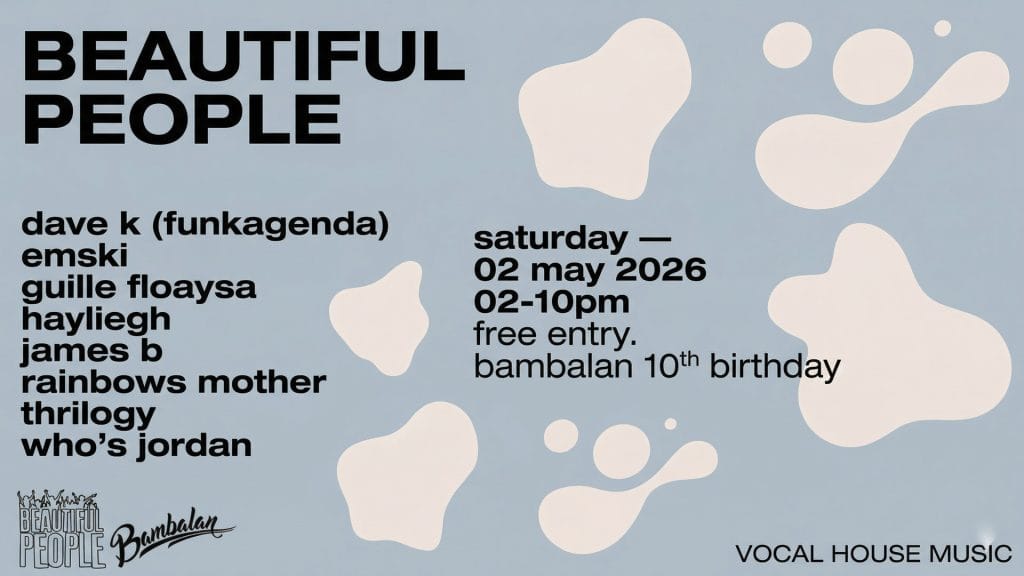 On Saturday 2 May, we’re marking our 10th birthday with a full terrace takeover alongside Beautiful People. Expect a day of vocal house, sunshine energy and that signature Bambalan atmosphere from start to finish.